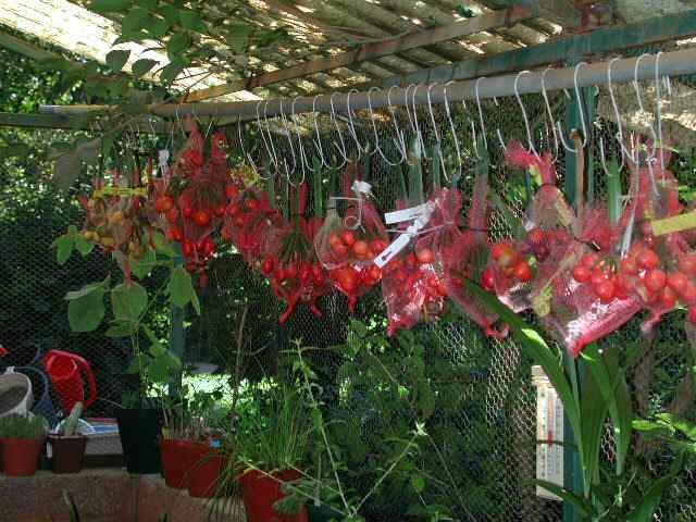 I let them hang like USA jerky, RSA biltong, Oz ? (with so many South Africans there it will soon be biltong as well) on a wire in the hot house just to dry out a little so that the jelly pulp is a little less jelly and easier to remove (see later chapter).